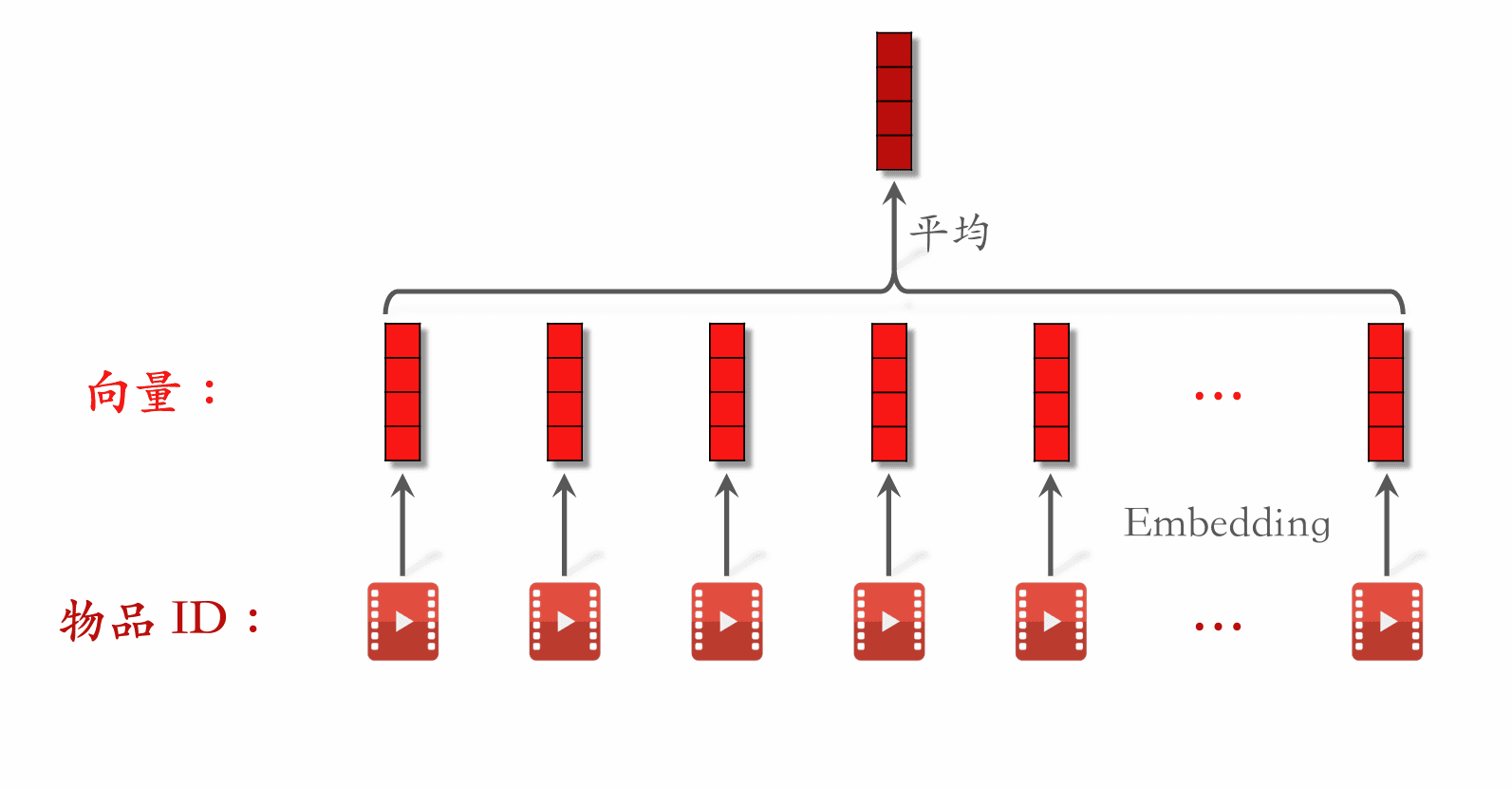 • Baseline:用户塔、物品塔分别是全连接网络,各输出一个向量,分别作为用户、物品的表征。